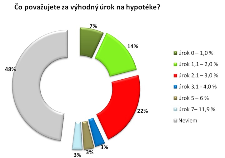 Z prieskumu Prima banky, ktorú pre ňu uskutočnila prieskumná agentúra 2muse vyplynulo, že Slováci nevedia posúdiť, aký úrok na hypotéke je výhodný. Na otázku „Čo považujete za výhodný úrok na hypotéke“ až 48% z nich odpovedalo jednoduchým „Neviem“. Výhodnosť banky však paradoxne nemerajú len cez výšku poplatkov a úrokov, ale aj cez transparentnosť a férovosť. Až 47% opýtaných uviedlo, že výhodná banka je pre nich tá, ktorá je voči nim férová a nemá vo svojich podmienkach žiadne dodatočné hviezdičky ani skryté podmienky pod čiarou. Pri výbere vhodného produktu až 57% Slovákov uprednostňuje banku, ktorá má rovnaké podmienky pre všetkých klientov bez rozdielu.